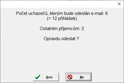 - ´před odesláním se v potvrzovacím dotazu zobrazí jak počet přihlášek, pro které se e-mail odešle, tak i počet osob, kterých se to týká (počet přihlášek >= počet osob)