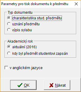 Student » ZKOUŠKY » Stránka Zkoušky » Tisk PDF - charakteristika předmětu, výpis sylabu, uznání předmětu
