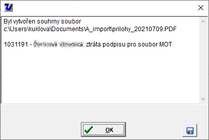 - při volbě "do jednoho PDF"/"do jednoho PDF (sudý počet stran)", pokud je příloha elektronicky podepsaná, dojde ke ztrátě podpisu a uživatel o tom bude informován v závěrečném reportu
