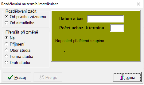 Uchazeč » Uchazeč » Hromadné operace s uchazeči » Přiřazení termínu imatrikulace - hromadně
