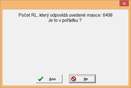 - Při ukládání nového záznamu nebo byla-li změněna maska předmětu, program zjistí a zobrazí počet předmětů, který odpovídá dané masce a zeptá se, zda je to v pořádku.