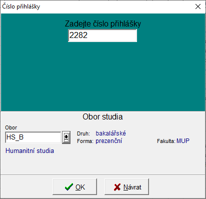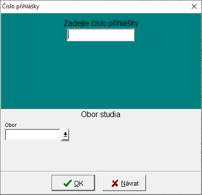 Program se zeptá na číslo přihlášky