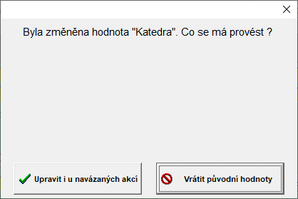 - změní-li se u matky katedra, program na to upozorní a nabídne buď provést změnu i u návazných akcí, nebo vrátit původní hodnoty