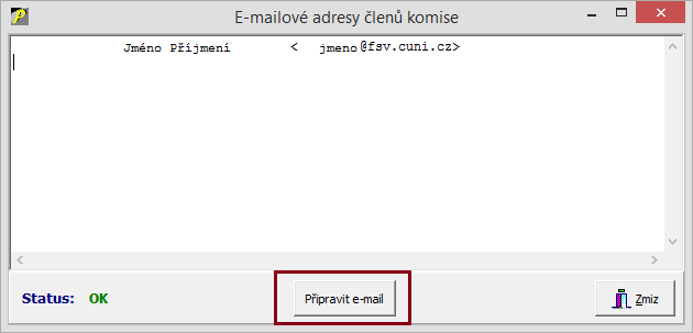 umožňuje vygenerovat e-mailové adresy všech členů vybrané komise a přenést je do emailového klienta: