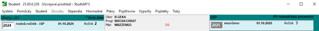 V programu STUDENT lze sledovat studijní údaje ze aktuálního akademického roku i z nového akademického roku. Je to výhodné v období, kdy je třeba všechny studenty zkontrolovat (resp. plnění jejich studijních povinností) a připravit pro postup do dalšího akademického roku.