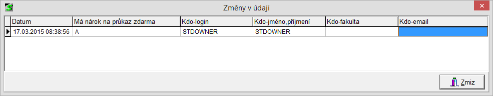 se zobrazí tabulka s informacemi, kdo a kdy daný údaj změnil: