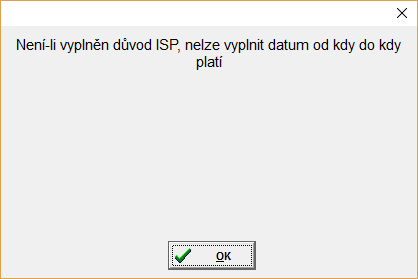 • Pokud je důvod ISP prázdný, musí být prázdné také položky Datum od a Datum do pro ISP.
