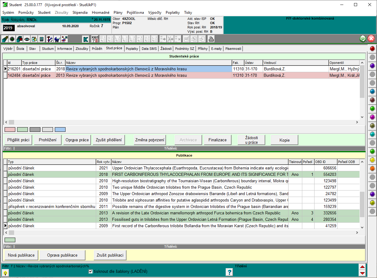 Výsledky studentských prací se evidují na stránce Zkoušky.