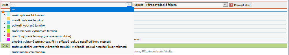 • stav pro uzavřené promoce "ceremoniál se neuskuteční" je možno zadat i zpětně. Pokud se jedná o budoucí termín konání promoce, rozešle se při nastavení tohoto stavu přiřazeným funkcionářům mail, kterým budou informováni o tom, že nedojde k ceremoniálu.