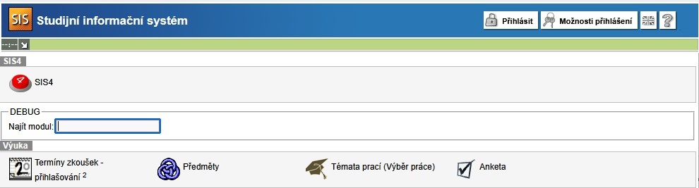 - tlačítko "Přihlásit" - přihlášení pomocí CAS
