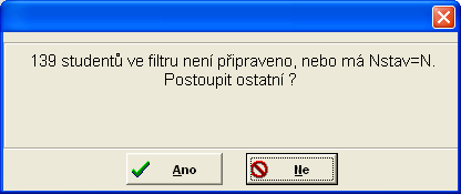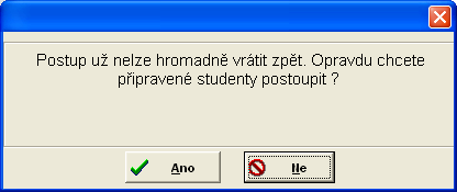 Operace postupu je nevratná. Provádí se pro studenty v uživatelském filtru. Postup je vhodné provádět po velkých skupinách - např. pro celý druh studia.