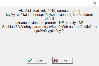 - verze programu Student, kterou se počítalo, akademický rok, semestr, ve kterém se počítalo