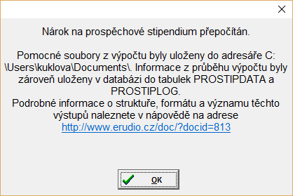 Dle rozáhlosti dat výpočet může trvat několik minut. Po zkončení výpočtu se zobrazí hláška, kde jsou uložené pomocné soubory: