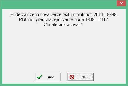 Má-li předmět přiřazenou anotaci nebo text, jejichž počáteční rok platnosti je menší než rok. pro který se provádí úprava, je možné vytvořit novou časovou verzi textu. Nová verze bude platná od roku, pro který se úprava provádí.