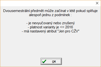 Dvousemestrální předmět může začínat v letní semestru, pokud splňuje alespoň jednu z následujících podmínek: - 1. Je to nevyučovaný nebo zrušený předmět.