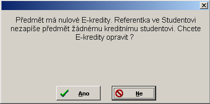 V případě, že se na UK v roce 2008 a vyšším pokusíte uložit předmět, který má mít vyplněné e-kredity, zobrazí se následující varovná hláška: