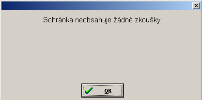 Pokud se zkoušky kopírují ze schránky a schránka neobsahuje žádné zkoušky, zobrazí se hlášení: