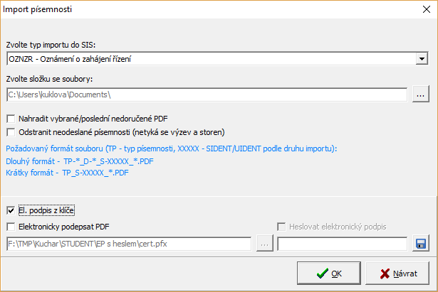Název importovaných dokumentů ve složce musí mít následující tvary: