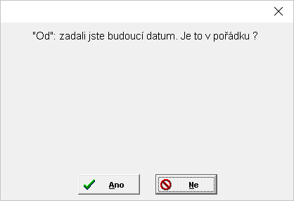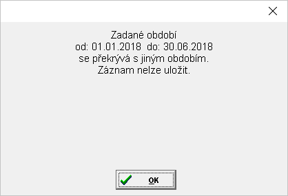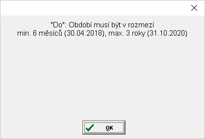 - Program kontroluje délku lhůty. Lhůta trvá nejméně šest měsíců a nejvíce tři roky. Pokud lhůta nesplňuje tuto délku, v chybové hlášce vypíše mezní data pro "datum do".
