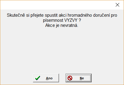 Pro hromadné doručení program nejprve žádá potvrzení akce: