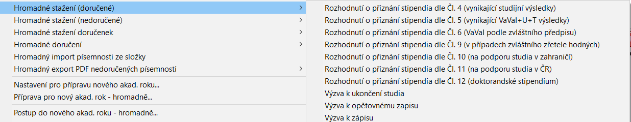 Student » HROMADNÉ OPERACE SE STUDENTY » Hromadné stažení (doručené/nedoručené/doručenky)