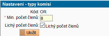 - přidá nastavení typu komise- Minimální počet členů