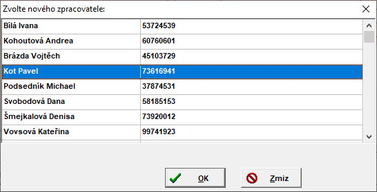 Po stisknuti tlačítka se zobrazí seznam uživatelů, kterým je možné daný záznam přiřadit.