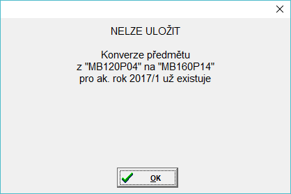 Při výběru předmětu pro konverzi se k výběru nabízí pouze "předměty" (ne skupiny... atd.), ne typu "přidělené body" a dále:
