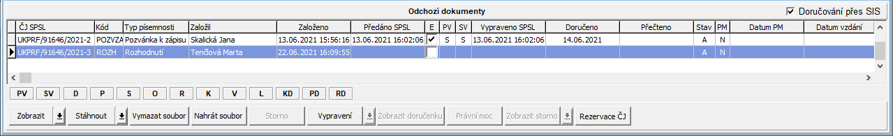 b) v případě individuálního vypravení záporného rozhodnutí na záložce "Odchozí dokumenty" je nepřístupná volba vypravení "S - pomocí SISu"