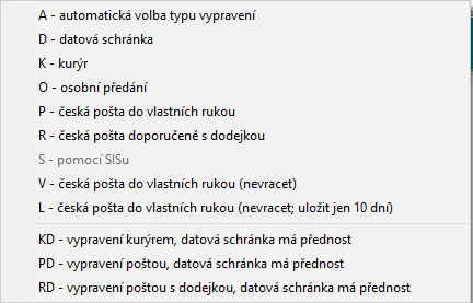 d) při hromadném vypraveni kladného rozhodnutí (ROZH), pokud je vybrán konkrétní způsob vypravení (ne "A - automatická volba typu vypravení") je tato volba "nadřazena" ostatním pravidlům a neprovádí se žádná kontrola.