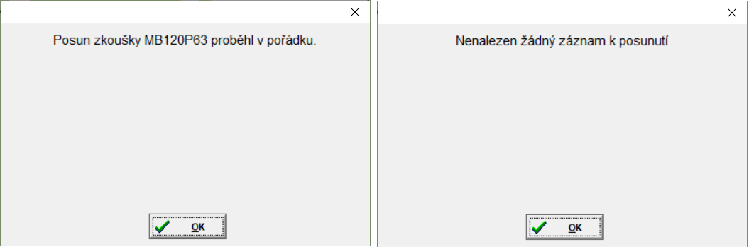 Na konci akce program ohlásí buď úspěšný posun nebo, že žádný záznam k posunu nebyl nalezen.