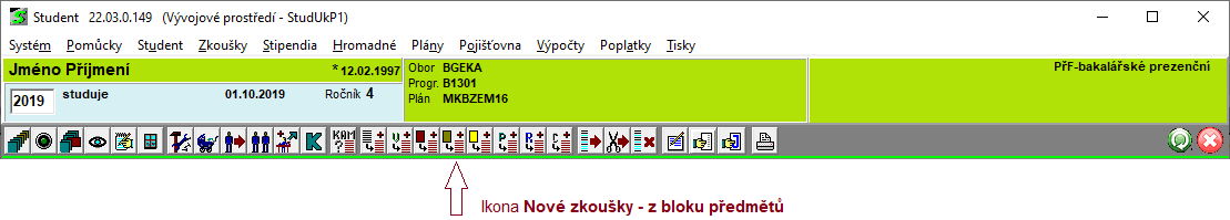 Student » ZKOUŠKY » - zadáváním předmětů » Zakládání nových zkoušek jednotlivým studentům » Nové - z bloku předmětů