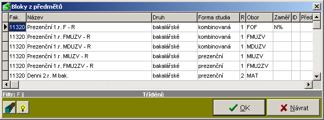 - vyberete požadovaný blok předmětů a potvrdíte tlačítkem OK