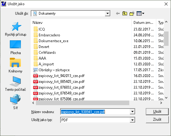- pokud ZL ještě nebyl generován, vygeneruje se z aktuálních dat, uloží do systému a program ohlásí "Ukládání PDF souboru proběhlo v pořádku"