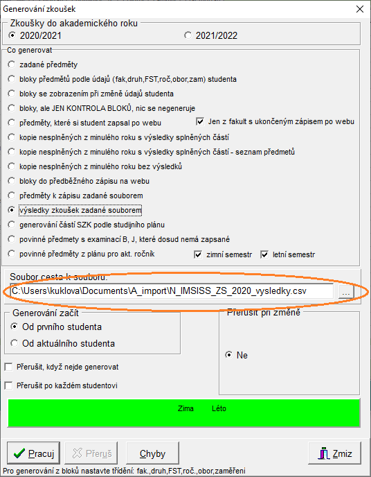 - "předměty k zápisu zadané souborem" - zapíše záznamy do Zkoušek