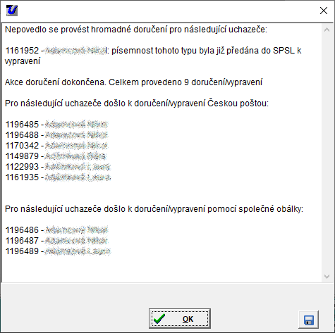 - u hromadného opakovaného vypraveni, pokud dojde k vybrání konkrétního typu vypraveni a písemnost, u které se program snaží provést opakované vypravení, již byla naposled tímto způsobem vypravena, ale ještě nemá zaznamenaný datum doručeni, bude při vypravení ignorována a na konci bude zobrazen report