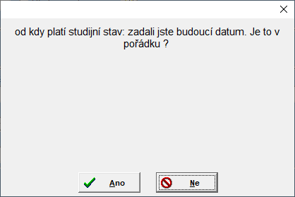 - při zadání budoucího data program na tuto skutečnost upozorní a je třeba odklepnout potvrzení, že je budoucí datum zadán úmyslně