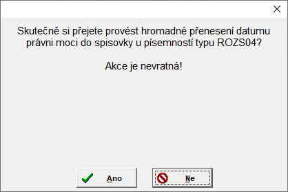 V menu "Hromadné" volbou " Hromadné zaznamenání datumu PM" je možno u vyfiltrovaných studií přenést do spisovky datum právní moci.