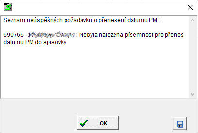 Po dokončení program vypíše seznam přihlášek, u kterých nebylo možné akci provést