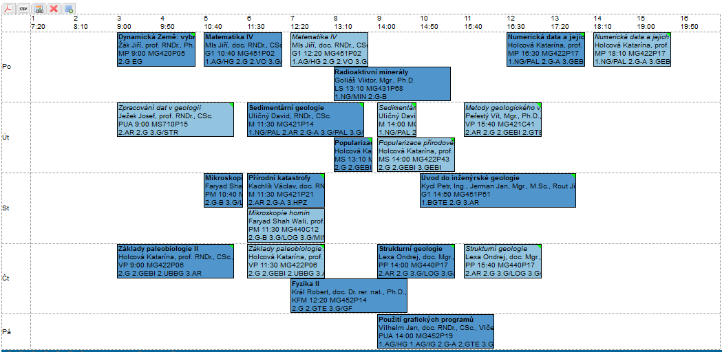 - červená hvězdička vpravo nahoře = indikovaná kolize uživatele, používá se např. pro doktorandy, kteří se mají účastnit nějakého semináře, ale nejsou na něj přímo zapsaní (např. proto, ze tam asistuji s výukou, ale nejsou přímo vyučující).