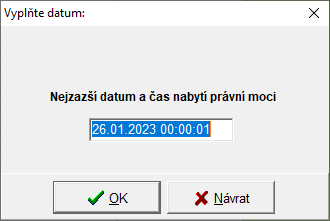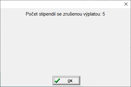 Po stisknuti tlačítka program vyvolá SQL příkaz, kterým u stipendií, ke kterým najde v DORUCOVANI nestornovanou písemnost typu ROZS% s nenabytou právní mocí či s právní moci nabytou až po termínu, který uživatel před spuštěním operace určí, nastav STIP.VYPLATIT na 'N'.