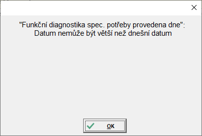 - Funkční diagnostika spec. potřeby provedena dne - datum, kdy byla provedena funkční diagnostika specifických potřeb
