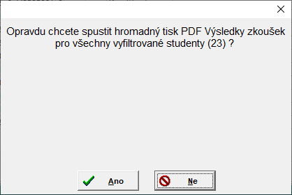 - Před hromadným tiskem se program zeptá zda opravdu spustit hromadný tisk a zobrazí počet studií ve filtru, kterým se PDF bude tisknout.