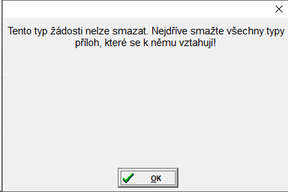 Pokud existují k žádosti přiřazené přílohy, je třeba smazat nejdříve je. Program na to upozorní: