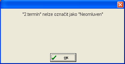 Pokud tomu tak není, program na to upozorní chybovou hláškou, např. kdyby v našem příkladu byl 2. termín omluven, objevila by se tato hláška: