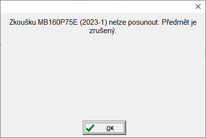 Pokud uživatel checkbox nezaškrtne a předmět je zvoleném roce předmět nevyučovaný nebo zrušený, program na tuto skutečnost upozorní hláškou: