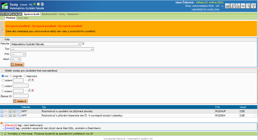 Modul Administrace textů pro EXE je určený k tvorbě šablon dokumentů, které lze následně tisknout z programu Uchazeč nebo Student.