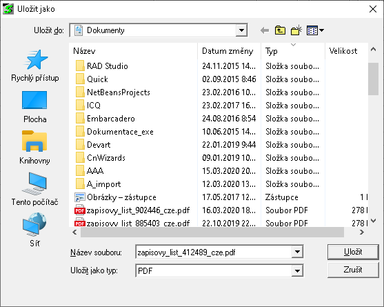 - pokud ZL ještě nebyl generován, vygeneruje se z aktuálních dat, uloží do systému a program ohlásí "Ukládání PDF souboru proběhlo v pořádku"