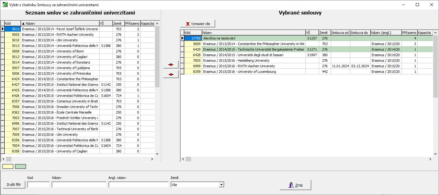 - Na levé straně je seznam smluv se zahraničními univerzitami.