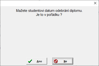 Volbu o odebrání diplomu lze použít i k opravě zadaného data či ke zrušení dříve zadané informace. Při mazání data odebrání program na tuto akci upozorní a uživatel musí potvrdit, že je tato akce v pořádku.